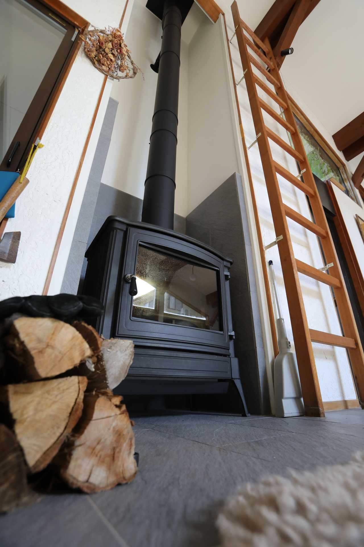 自然と薪ストーブに和むお家